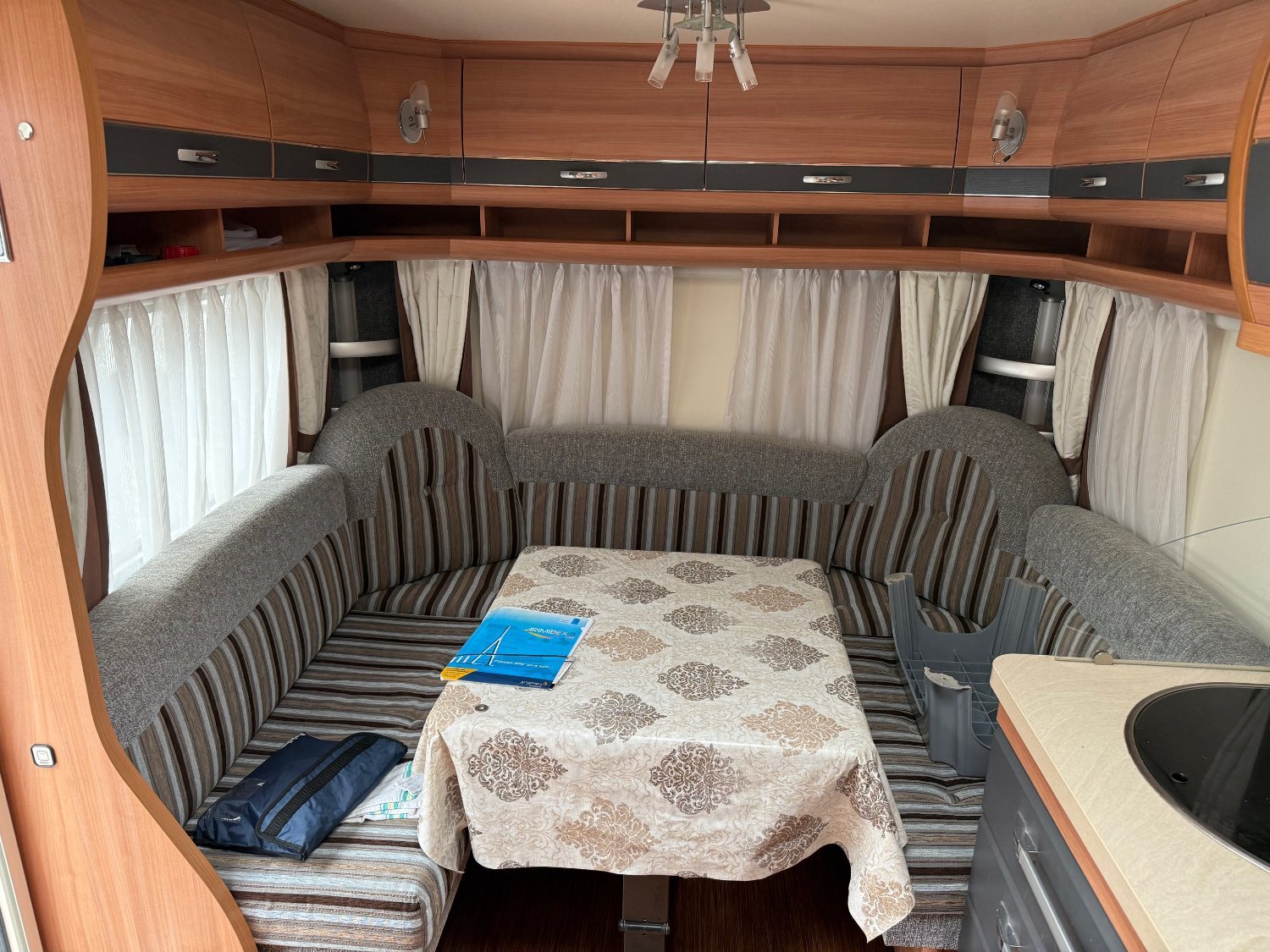 Equipée d'un climatiseur, d'un déplace caravane, porte vélo sur flèche, store de 4 m + auvent.