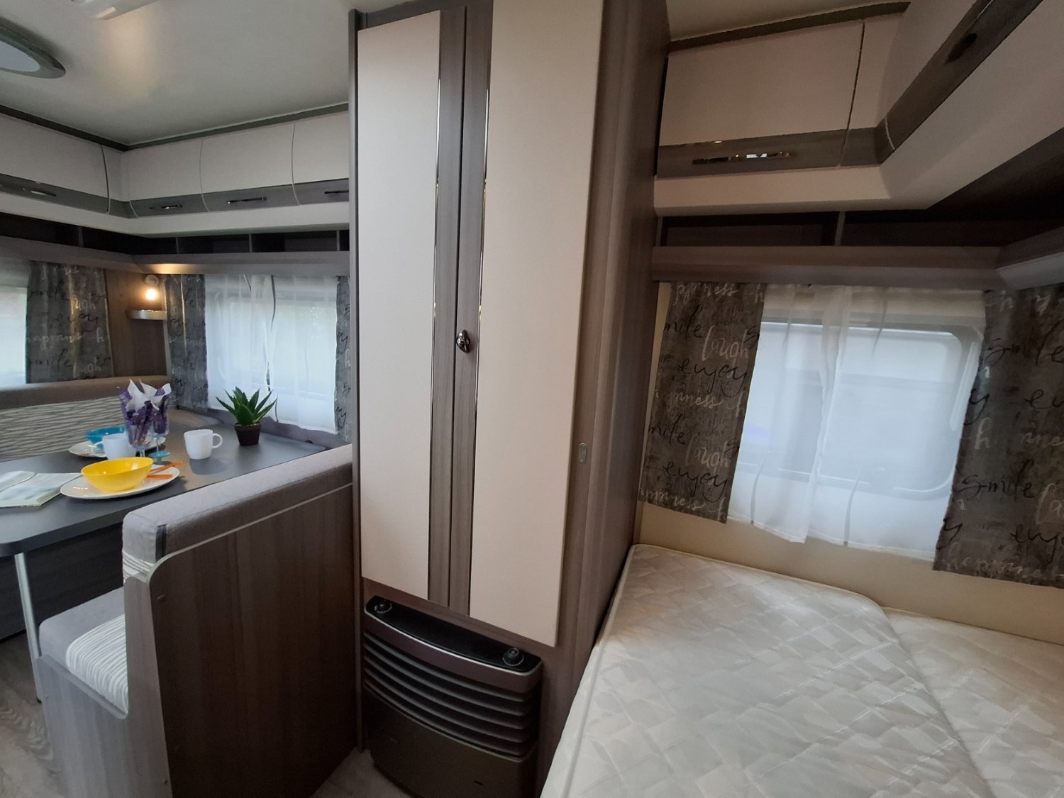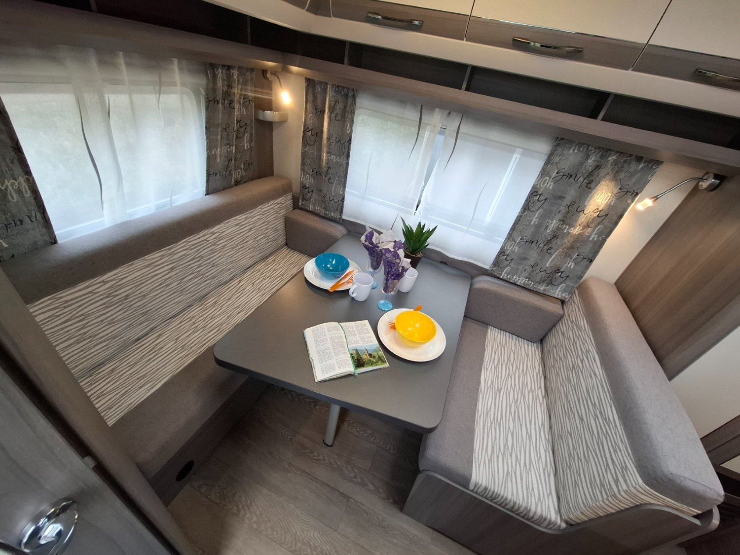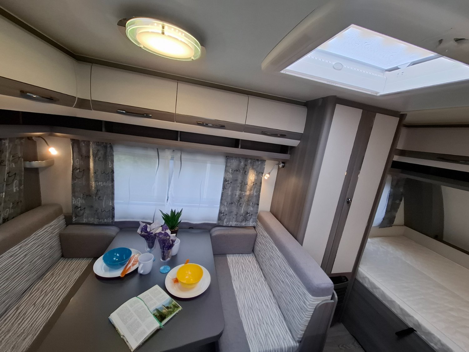 Très jolie petite caravane, bénéficiant du confort et de la qualité de fabrication HOBBY : confortable et marge dînette arrière que vous transformerez aisément en couchage pour 2 personnes, eau chaude, chauffage à air pulsé, lit permanent très confortable, déplace caravane à approche manuelle, store de toit. La caravane est totalement révisée et les pneus seront changés pour la mise à disposition.