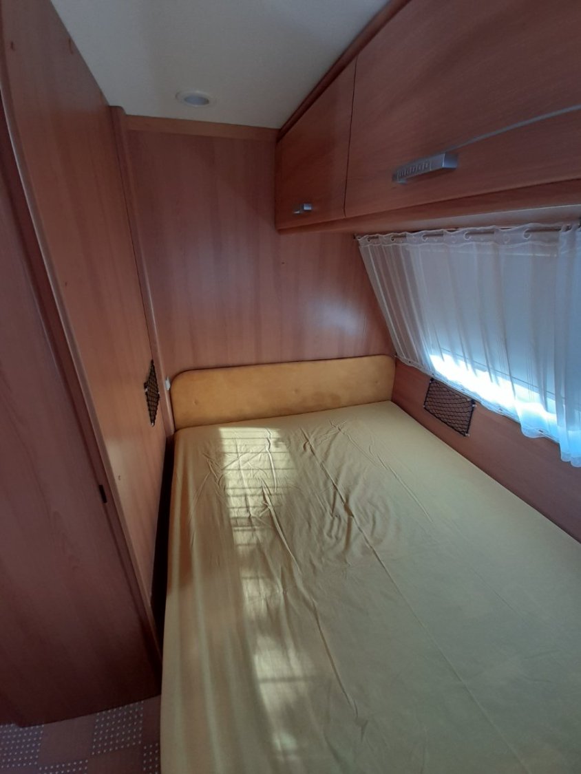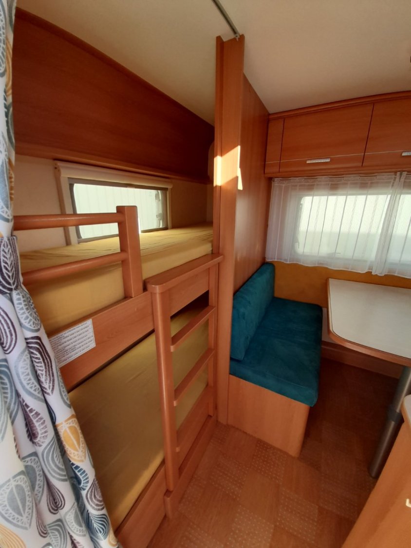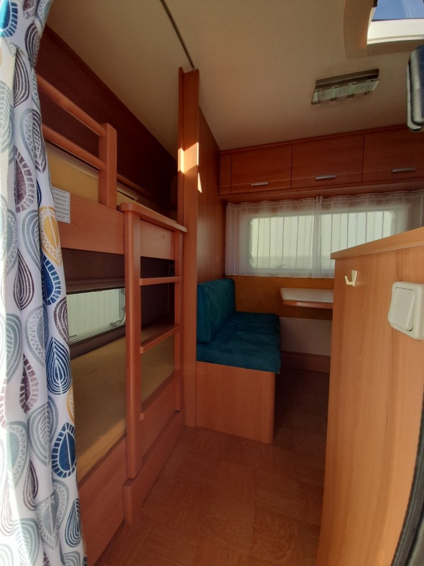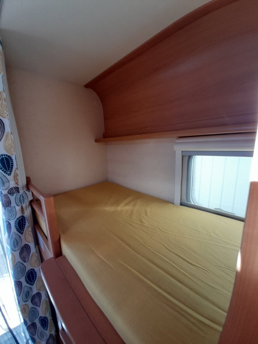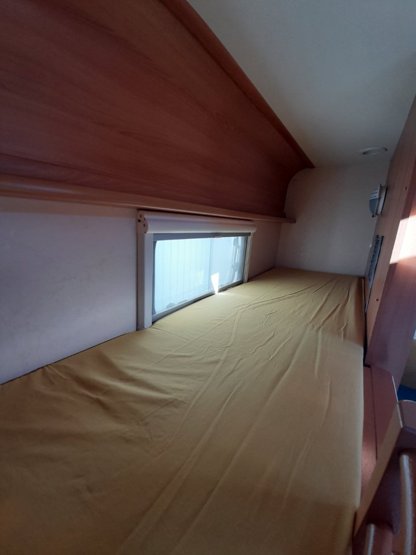 Nombreux rangements : 7 placards, 2 tiroirs, 1 penderie, 1 grand coffre sous le lit fixe, 1 soute au niveau des lits superposés, 2 coffres sous les banquettes et 1 grand coffre au niveau de la flèche.