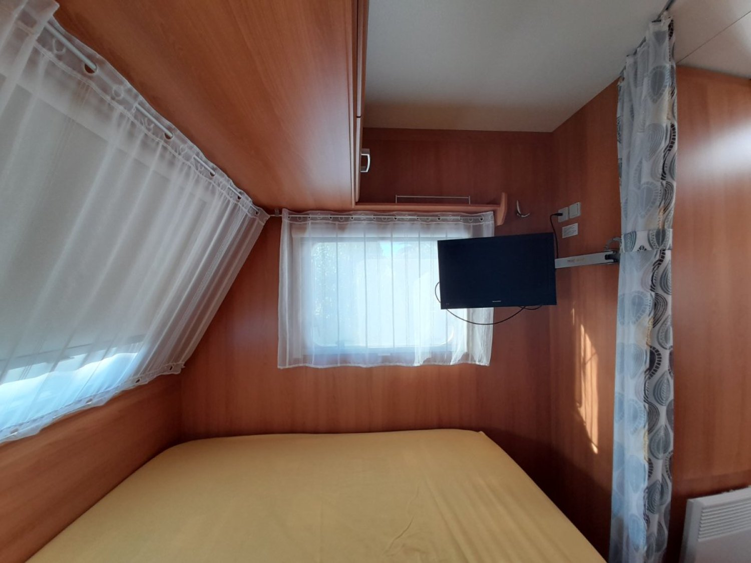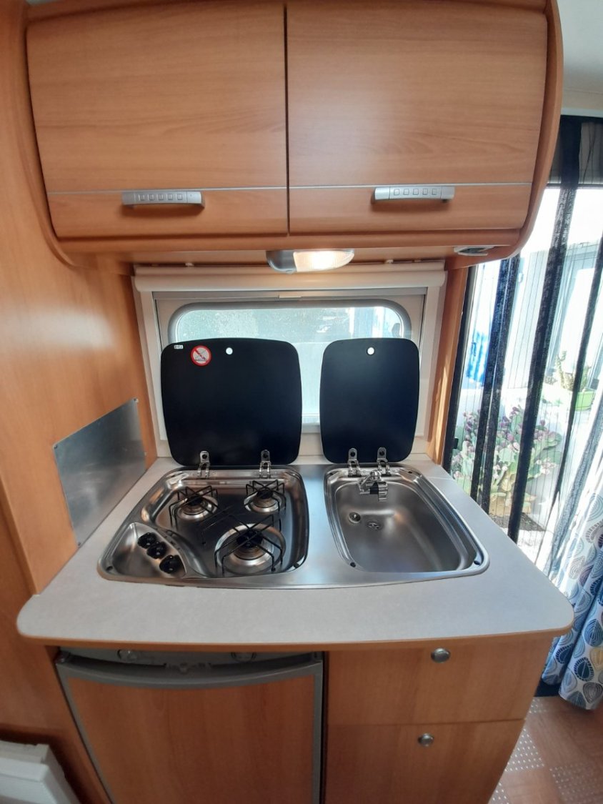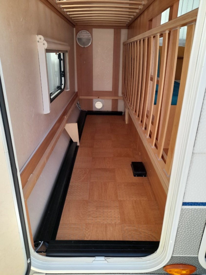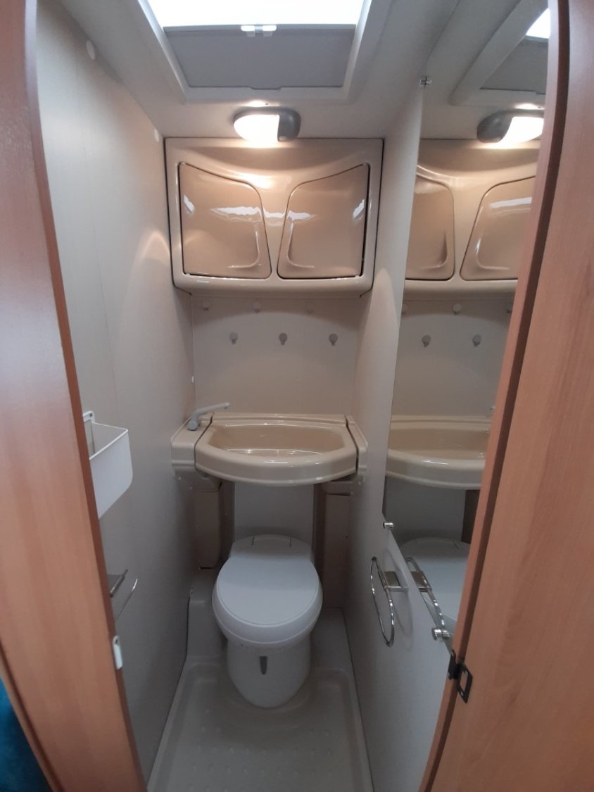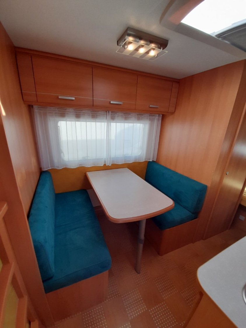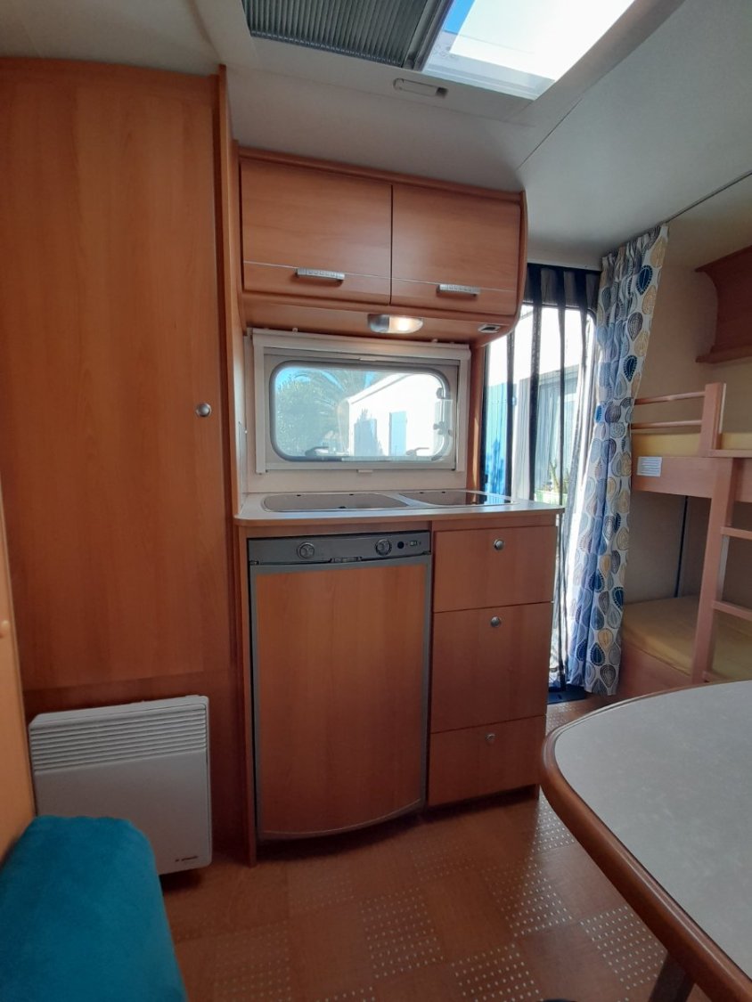 Nombreux rangements : 7 placards, 2 tiroirs, 1 penderie, 1 grand coffre sous le lit fixe, 1 soute au niveau des lits superposés, 2 coffres sous les banquettes et 1 grand coffre au niveau de la flèche.