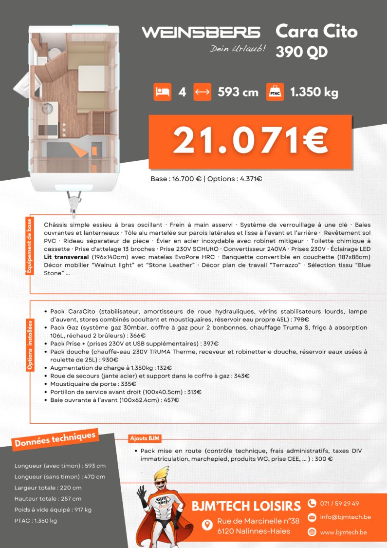 Marque | Weinsberg | Modèle | CaraCito 390 QD | |