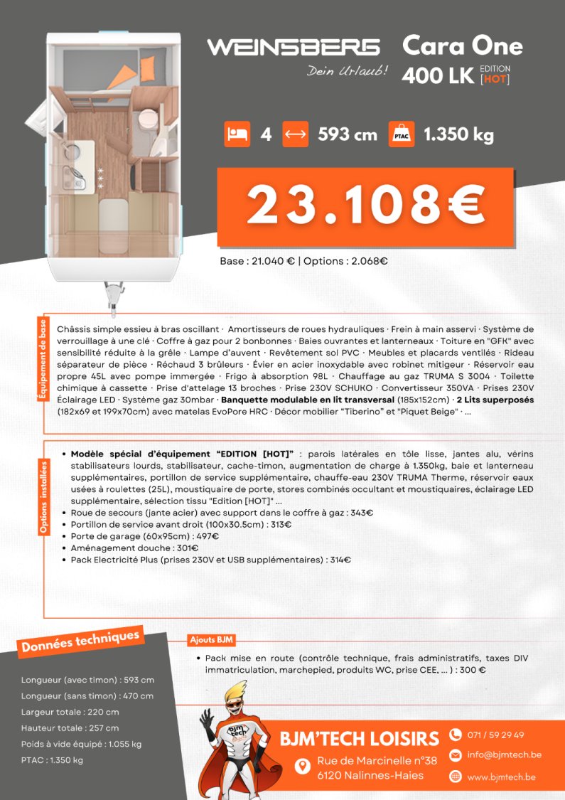 Marque | Weinsberg | Modèle | CaraOne 400 LK | |