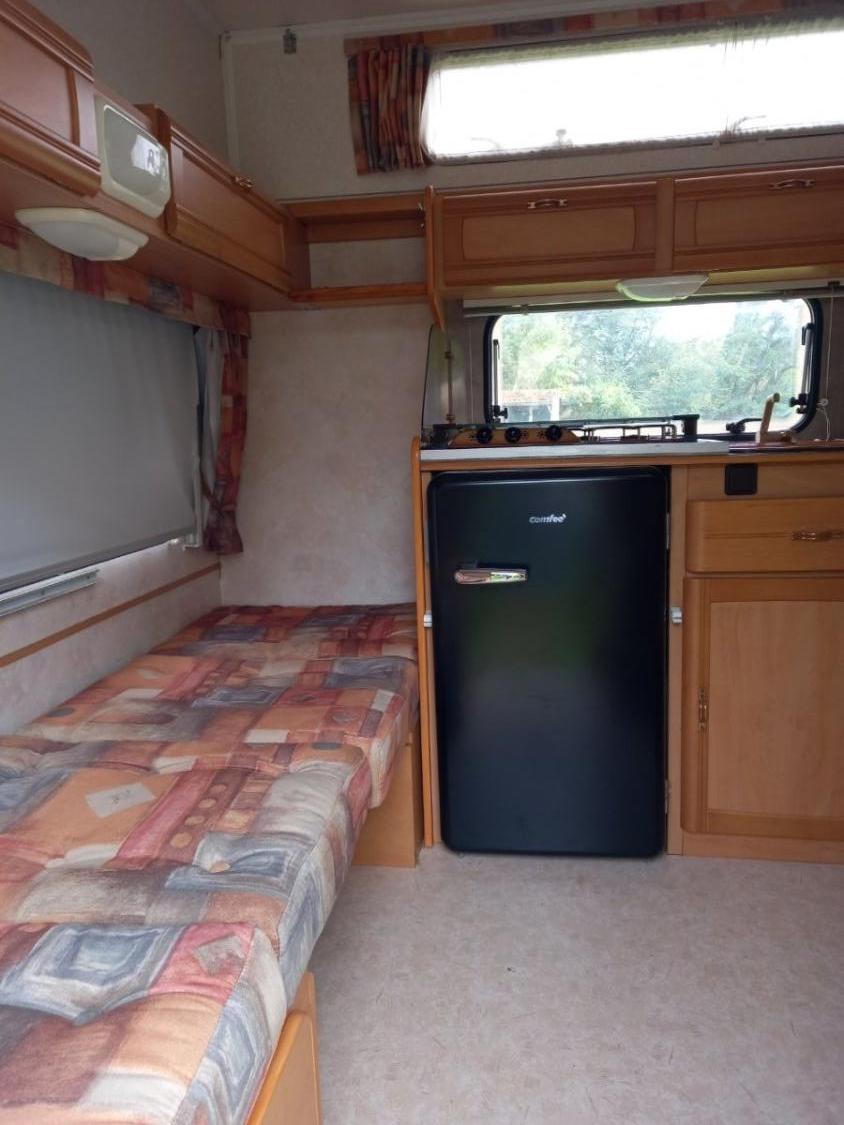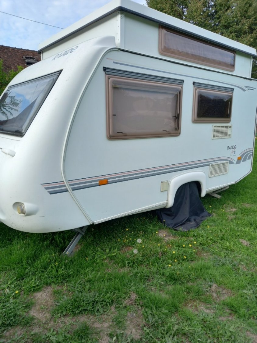 Vends caravane année 2002 + auvent très peu servi (x 5 fois) avec un réfrigérateur intérieur neuf et 2 pneus neufs également. Prix de l'ensemble à débattre.