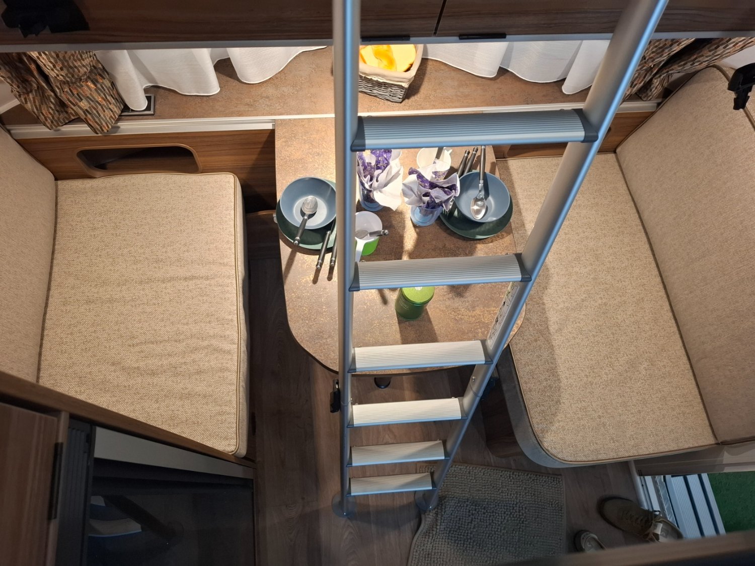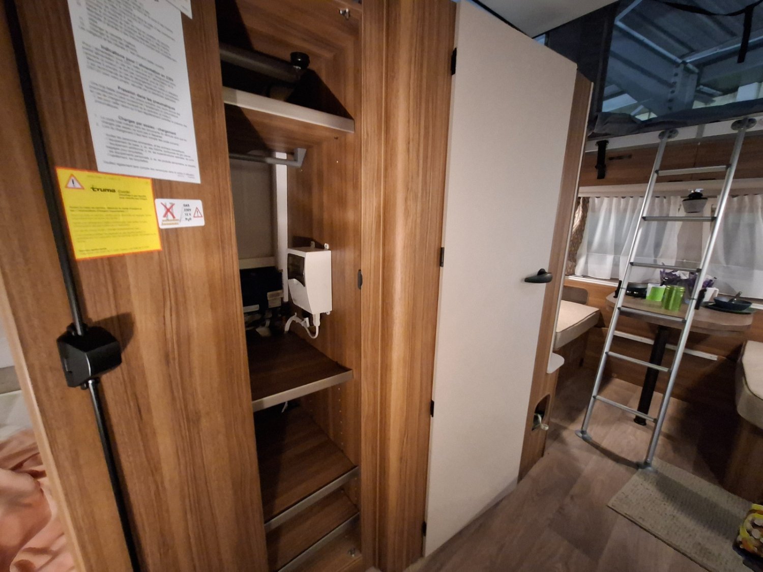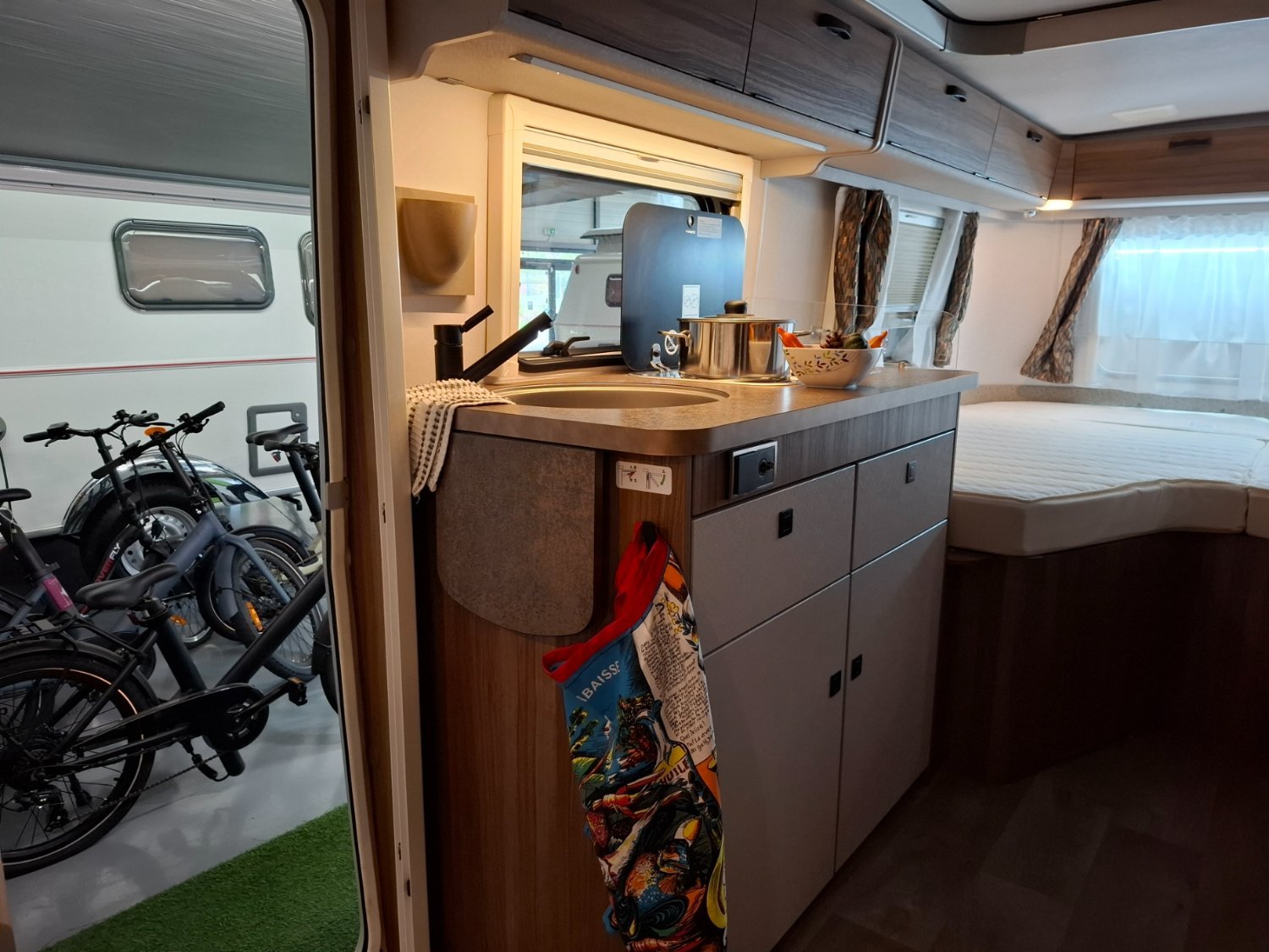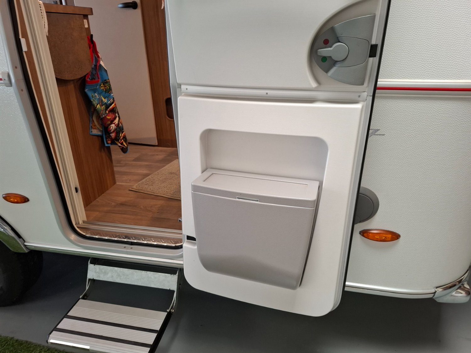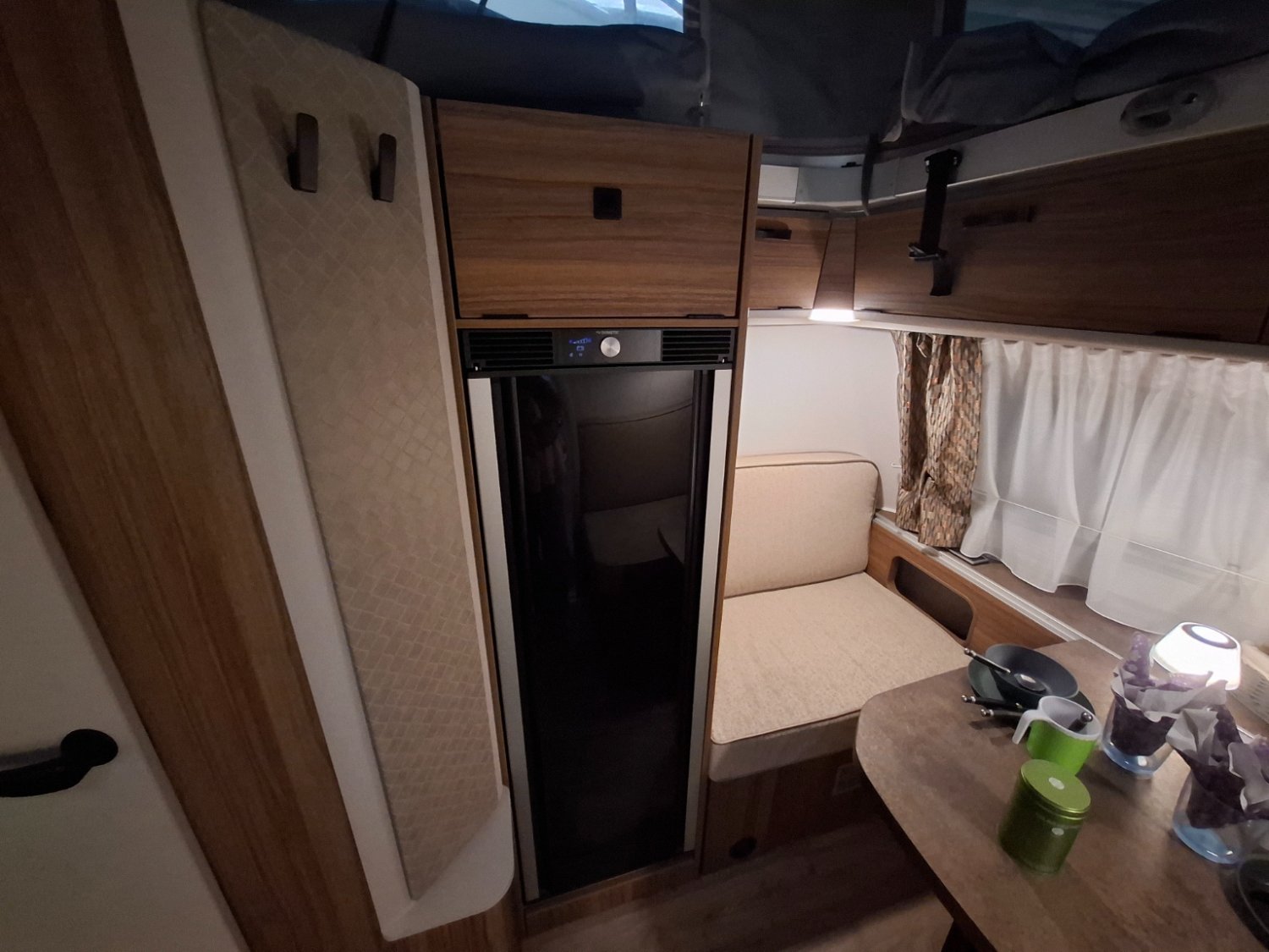 Caravane d'occasion très récente - Une Touring avec un couchage sous toit relevable confortable (comme sur un fourgon) - Cet équipement fait de cette caravane une vraie familiale avec en complément son grand réfrigérateur à compression de 133L. Elle est déjà équipée de son déplace caravane et du store Thule avec éclairage LED intégré.
