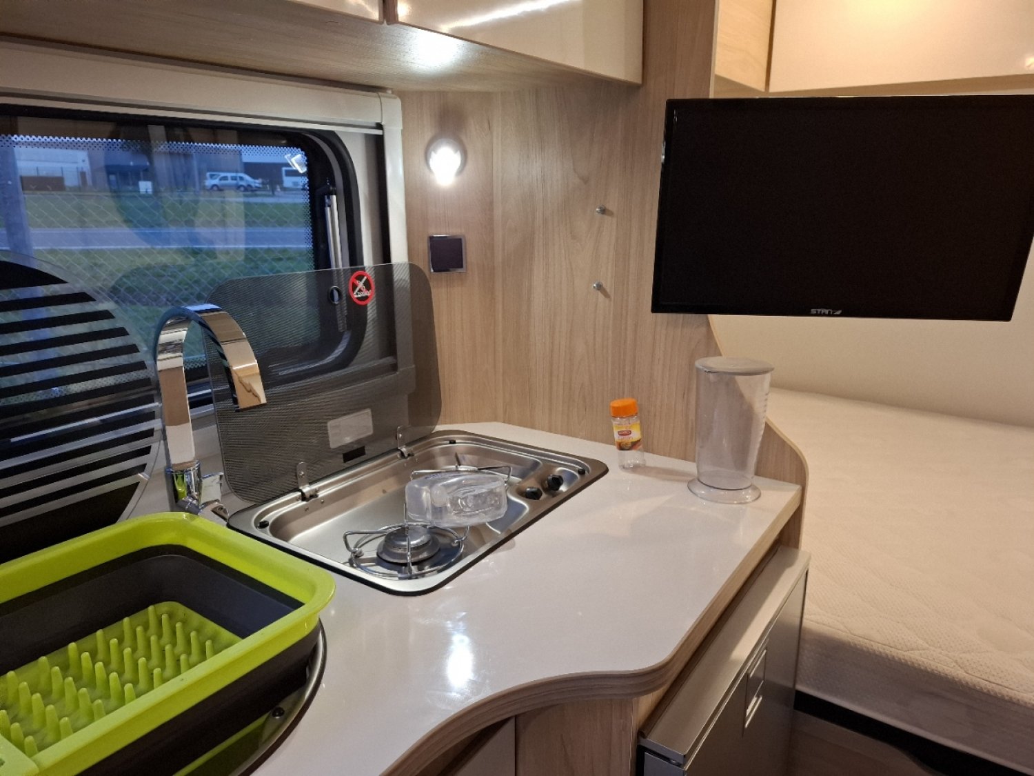 Très jolie caravane compacte (seulement 2m05 de large), confortable et bénficiant d'un excellent équipement : déplace caravane, équipement TV complet, joli salon à l'avant, couchage confortable, réfrigérateur à compression 12V. Une belle opportunité à saisir sans tarder. Le design est épuré et très apaisant. La caravane est complètement révisée. Les pneus seront changés pour la mise à disposition. Garantie 12 mois.