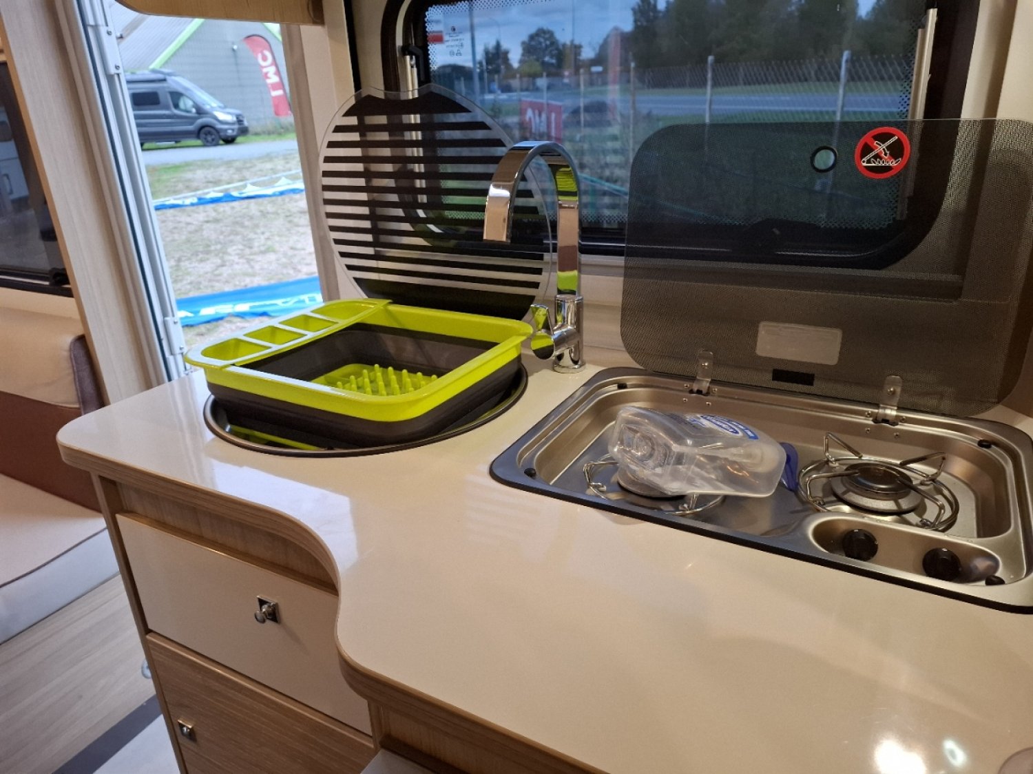 NB : la vidéo attachée à notre annonce a été réalisée en 2021 sur notre caravane d'exposition de 2021 ; la couleur des coussins n'est pas celle des coussins de la caravane d'occasion que nous mettons en vente. La couleur des meubles est bien la même. Cette vidéo est destiné à vous présenter l'ambiance générale, les volumes et fonctionnalités.