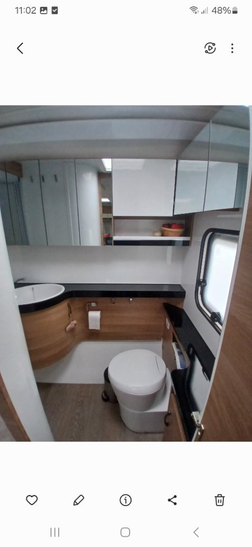 État exceptionnel, proche du neuf. Très spacieuse, avec une grande salle de bain à l’arrière sur toute la largeur du véhicule. Confortable et entièrement équipée.
