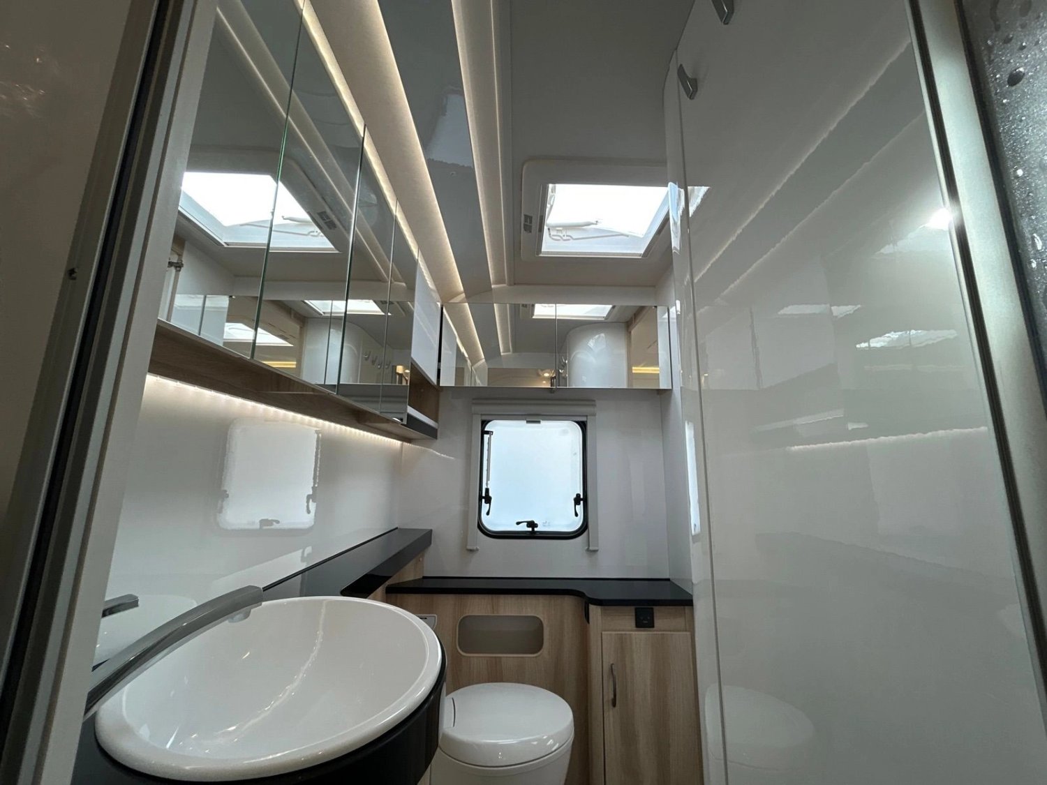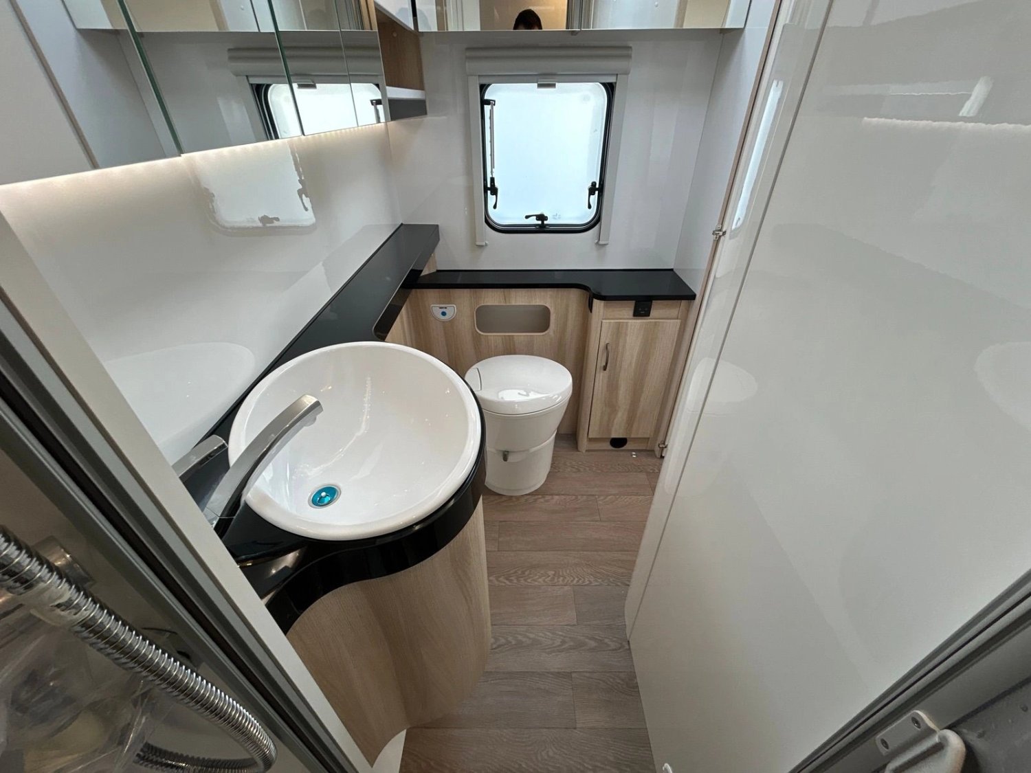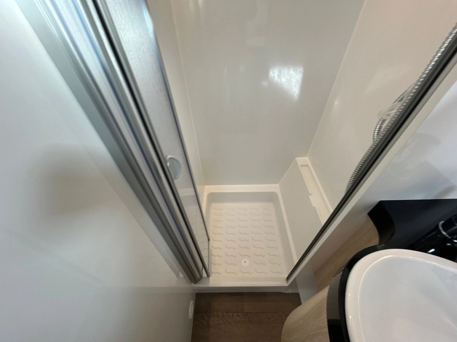 Salle d’eau à l’arrière avec cabine de douche séparée, selon modèle