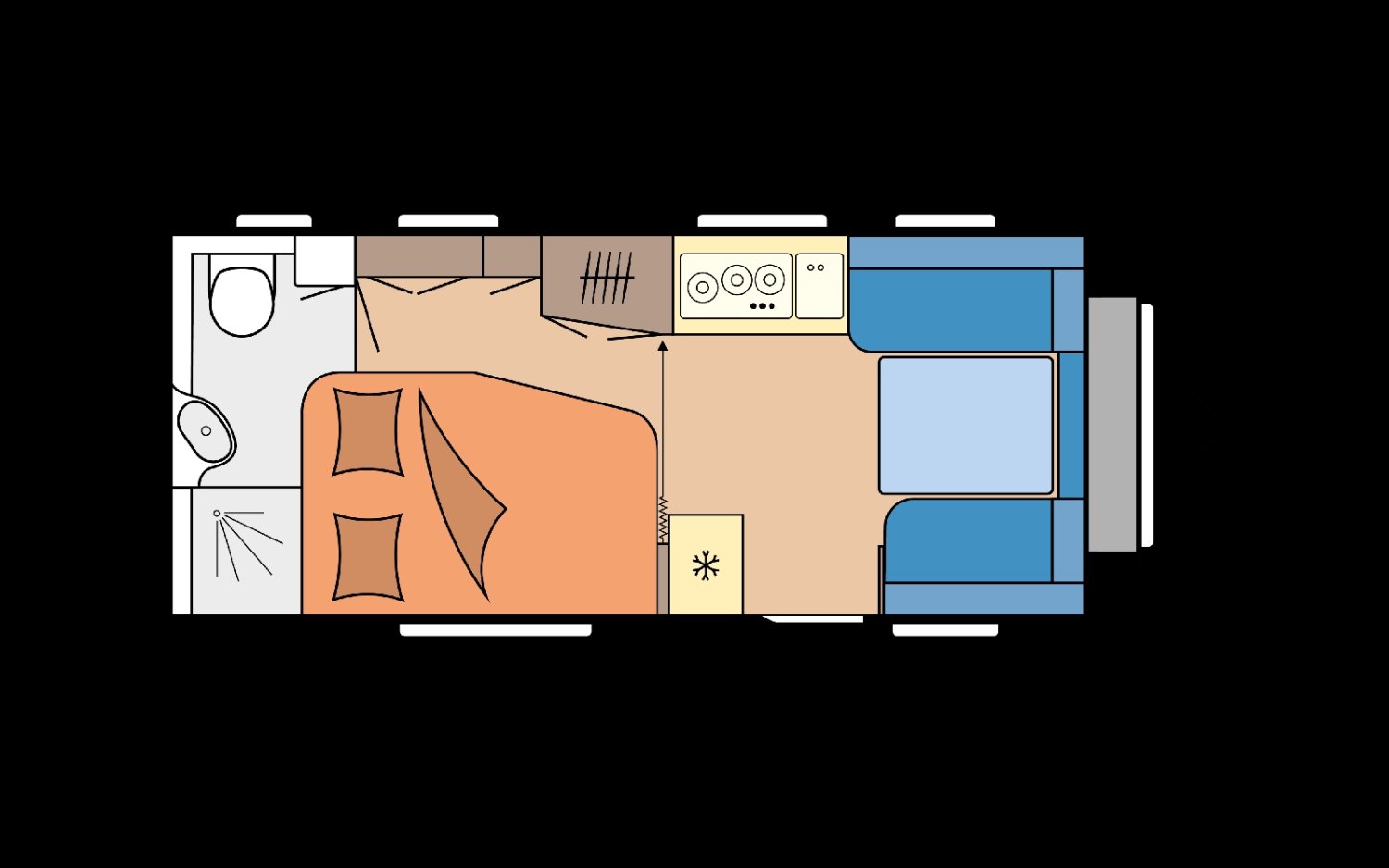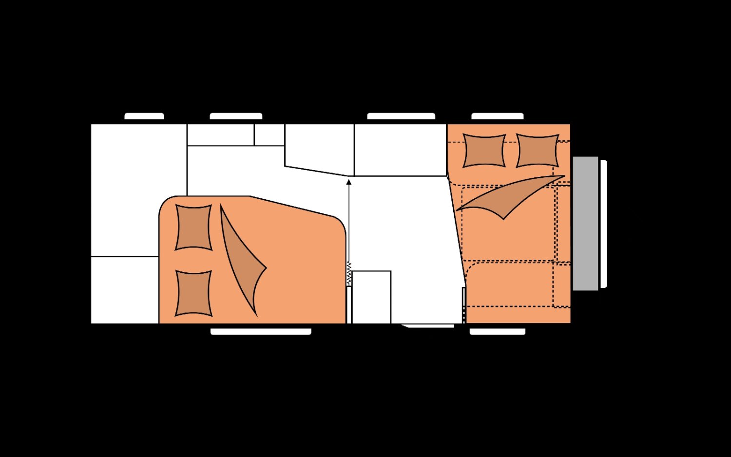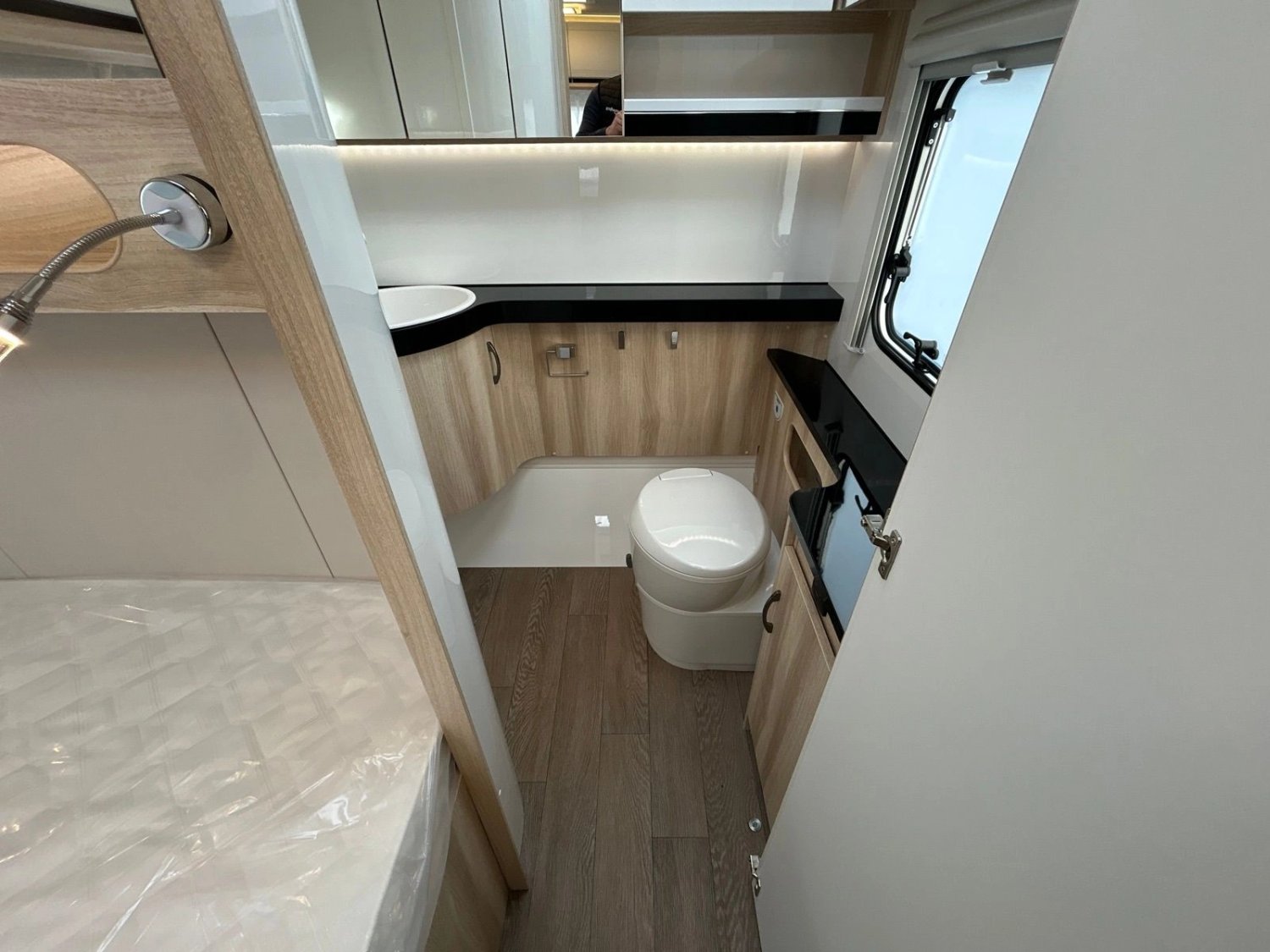 Salle d’eau à l’arrière avec cabine de douche séparée, selon modèle