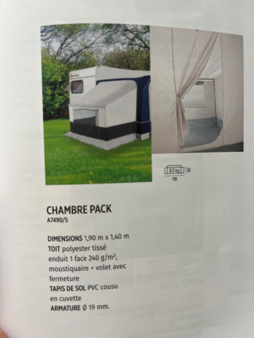🛌 Auvent 2,70m TRIGANO avec une cellule supplementaire type rangement + aménagement chambre et une cellule chambre. La caravane + les cellules = 7 couchages.