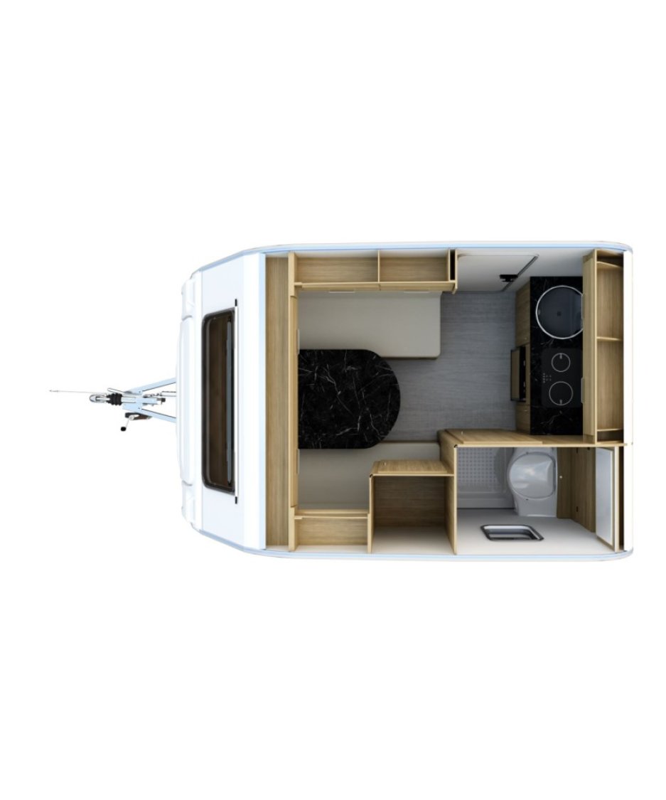 Le modèle sport est une combinaison du modèle N-Cross et du modèle Sprint plus petit. L'espace séjour comprend une table convertible en grand lit. La NT SPORTS est équipée d'un coin salle de bains