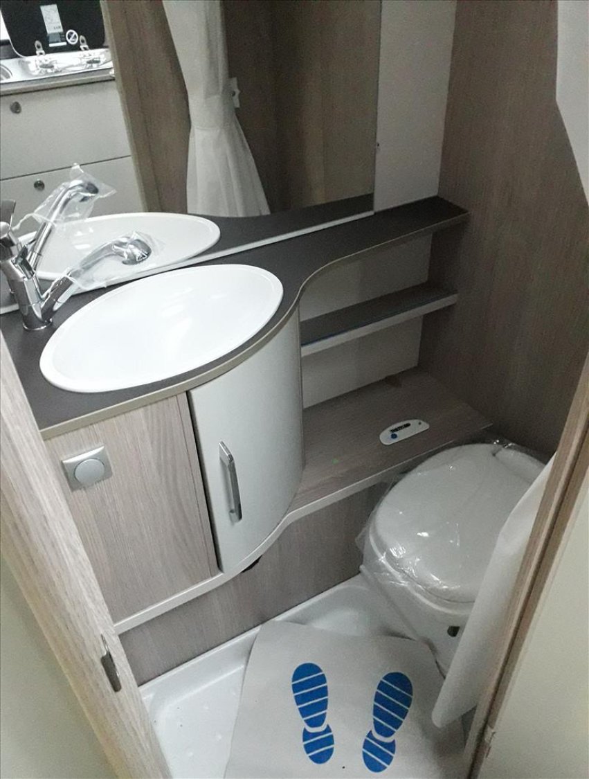 Baie double vitrage ouvrantes teintées avec store, Chassis en acier galvanisé ultra-léger, Chauffage S 3004, Détecteur de fumée, Eclairage LED 12v / 230 V, Eclairage d'auvent à LED, Flexible de douche, Isolation du passage de roue, Porte d'entrée cellule monobloc, Poubelle intégrée à la porte d'entrée, Prises USB, Prises électriques 230V, Stabilisteur, Support de roue de secours dans le coffre à gaz, Système de feinage automatique, Tiroir de cuisine à rappel automatique, Transformateur 350 VA, Vérins de stabilisation, WC cassette, Évier, cuisinière à gaz 3 feux avec allumage électrique